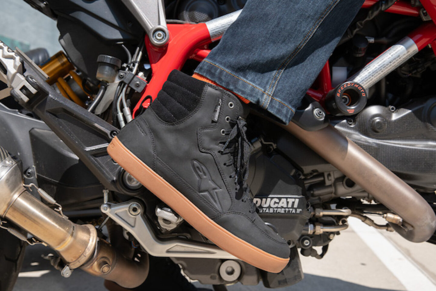 Вот здесь уже появляется понятие «защита». Жесткая пятка, укрепленная щиколотка. Целая куча механизмов застёжки и фиксации на ноге! Более жёсткая подошва, которая будет держать вес мотика при падении в статике. Это — рабочий инструмент. Для поездки на работу, для встречи с друзьями, для неспешной покатушки. Они дают вам иллюзию обычной обуви и базовую безопасность. Главный их враг — энергия бокового удара, подворот голеностопа. Представь: падаешь, нога подворачивается, и весь вес мотоцикла (а это 180+ кг) приходится на точку чуть выше этого милого жесткого ботинка.